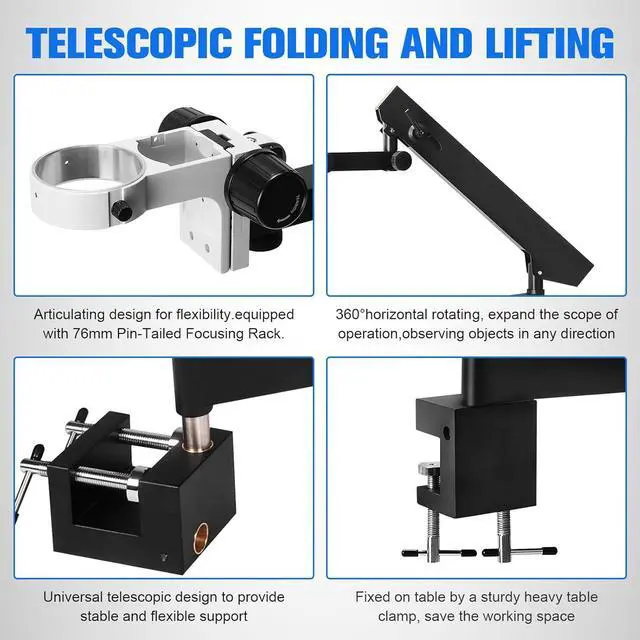 Multi-Dimensional Adjustment for Versatility: With a foldable microscope bracket, the stand is height-adjustable and supports multiple angles, accommodating different experimental needs and user habits with ease and efficiency.