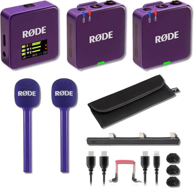 Compact dual-channel wireless microphone system with built-in transmitters and receivers