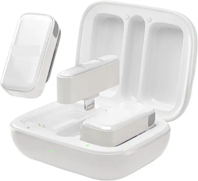 PORTABLE CHARGING CASE: a compact case that stores and charges both mics simultaneously, extending usage time for smartphone content work. its lightweight, slim design fits easily into bags or pockets, perfect for outdoor shoots or travel. a quick charge from the case provides hours of additional use, preventing interruptions during long recording sessions.