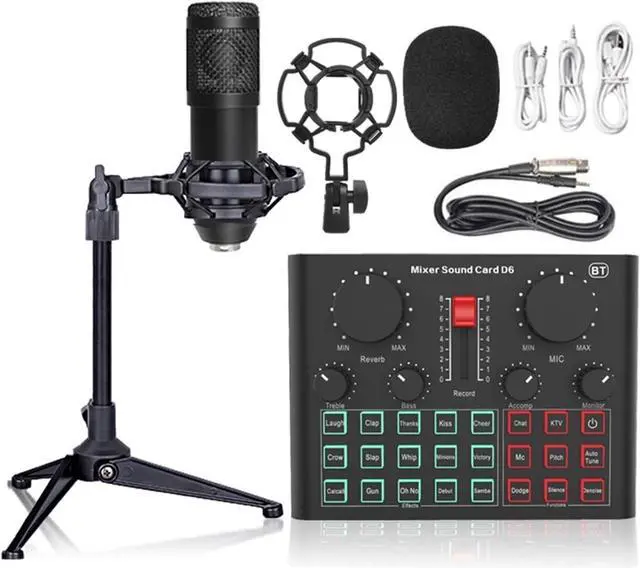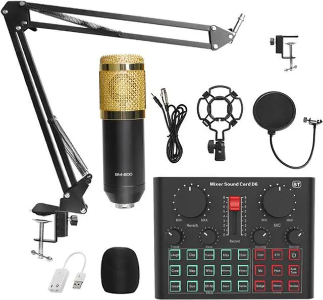 Sound Card Kit BM800 Microphone Professional Condenser Bluetooth Wireless MIC Sound Card with Ring Fill Light Cantilever Bracket Live Streaming Studio SetuD6 Sound Card 1