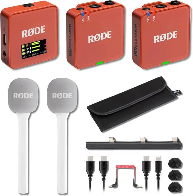 Two Interview GO adapters convert transmitters into handheld microphones