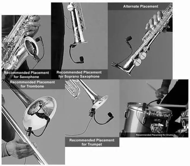 Pro Instrument Microphone , Saxophone Trombone Piano tambourine Bbumm stringed instruments Mic, Gooseneck, ratcheting swivel joint and gooseneck angle brace allow for optimum placement and fixed positioning