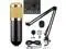 1. The microphone bundle includes essential accessories such as a condenser microphone, adjustable suspension scissor arm stand, table mounting clamp, shock mount, pop filter, 3.5mm male to XLR female cable, sound card/microphone adapter and manual.