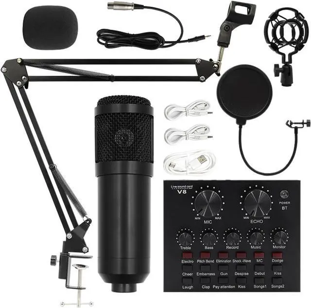Strong pick up voice power Bright Color golden plated microphone refresh your life Ideal for radio broadcasting studio, voice-over sound studio, recording etc. Excellent for singing, speech and instruments V8 live sound card