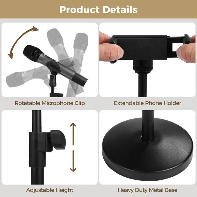 Smartphone & mic mount, 2-in-1: recording with smartphone or microphone is made easy; detachable mic clip included with phone grip; use your mic or mobile to record podcasts, livestreams, plus more; no further equipment necessary