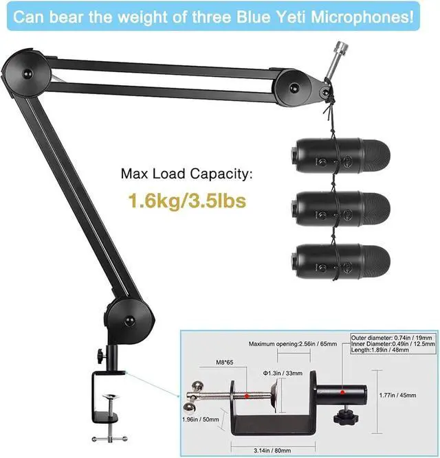 Adjustable & Flexible: Easily adjust the microphone angle and height to find the perfect position for your recordings, with a versatile scissor arm design.