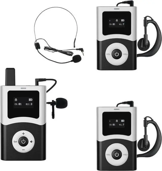 PORTABLE 1-TRANSMITTER & 2-RECEIVER CONFIGURATION: the system comes with 1 compact transmitter (for guides) and 2 lightweight receivers (for group members), all designed for easy carrying during travel. The transmitter fits comfortably in a guides hand or pocket, while the receivers are small enough to be clipped onto clothing or held.