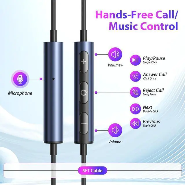 Hands-free Call/Music Control: These comfortable type-c in-ear earphones built-in high quality microphone for clear phone call and chat, the in-line control allow you easily to control call/music volume, hang-up call, play/pause/skip/fast-forward/rewind music without pickup your phone.