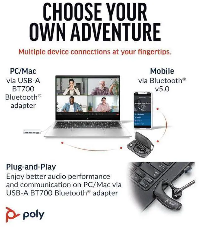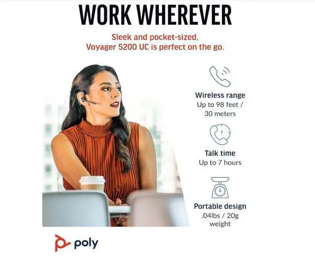Upgrade your work-from-home setup or office headset solution with this reliable, like-new Poly Voyager 5200.