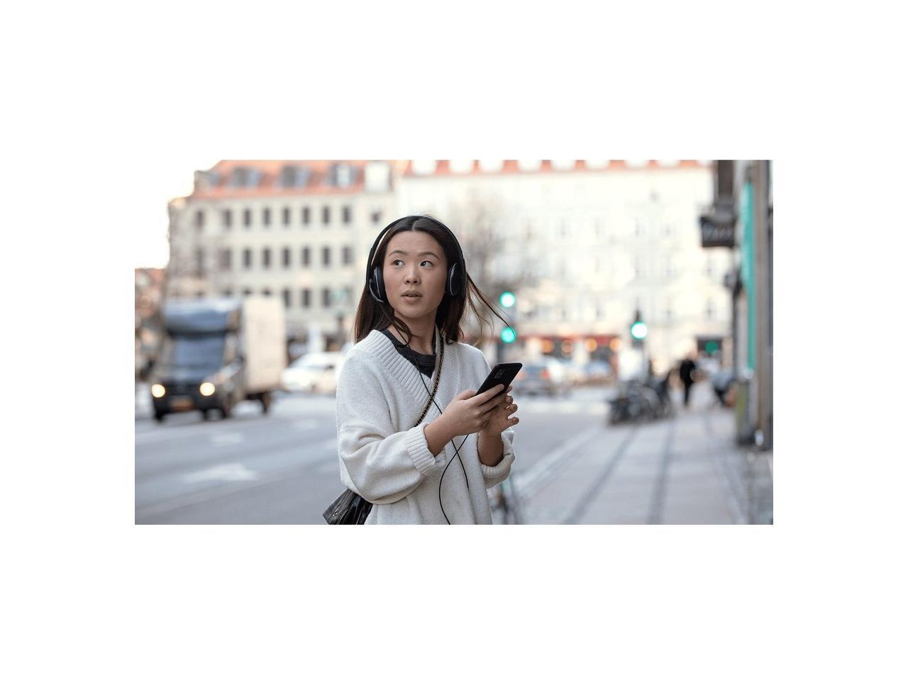 - Black on-ear design with high-comfort ear pads.