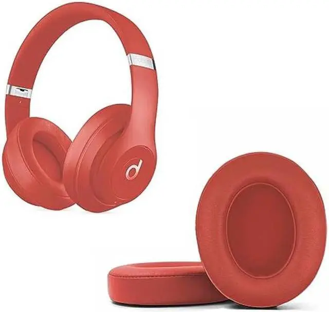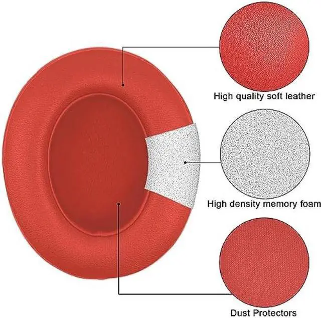 Replacement Ear Pads for Beats Studio 2 & Studio 3 Wired & Wireless Headphones, Replacement EarPads Cushions Headphones Covers with Memory Noise Isolation Foam Softer Leather-Red