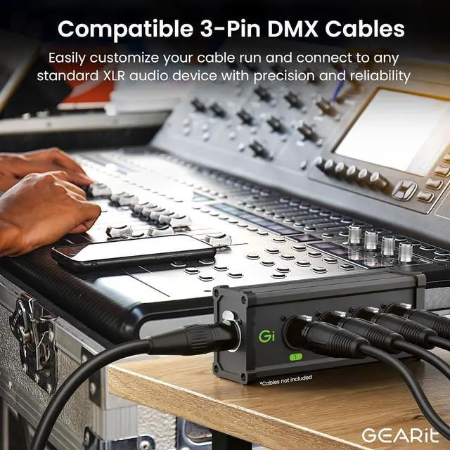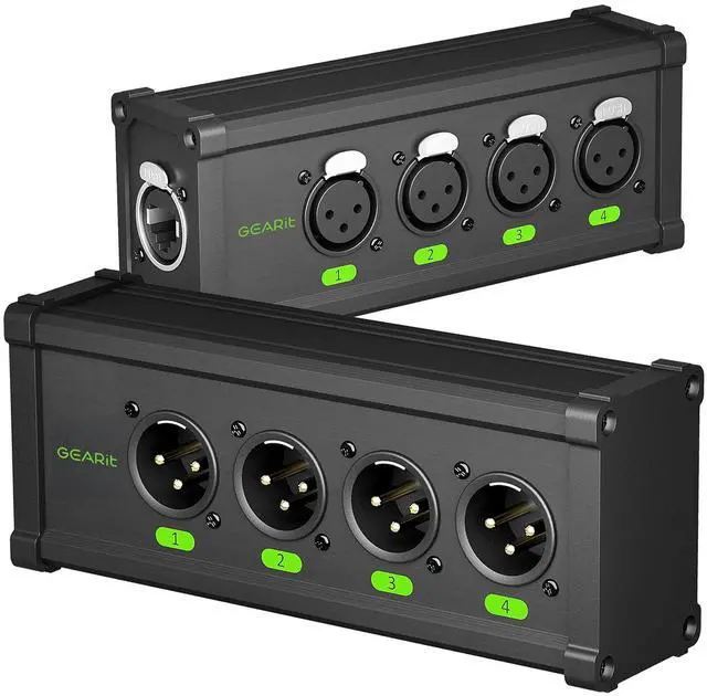 4 Separate DMX Control Signals - Control LED stage lights, DJ lights, fog machines and effects with up to 4 DMX signals over 3-pin XLR connectors. These adapters allow you to use up to 4 different lighting controllers to control separate lights, while minimizing long cable runs from the control room.