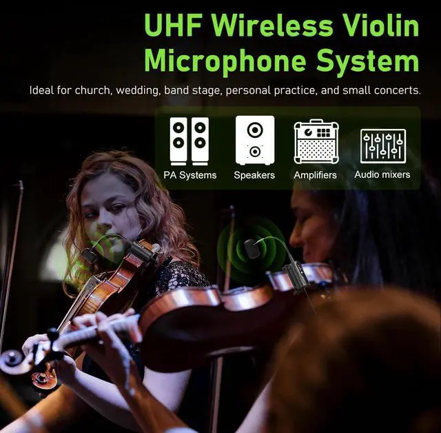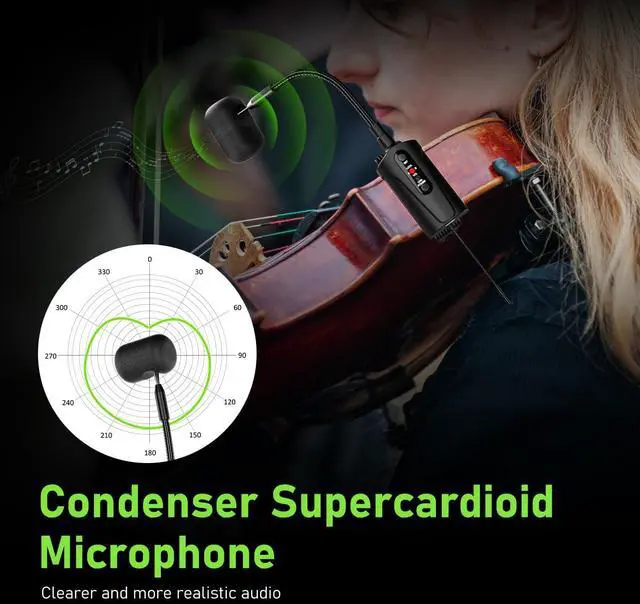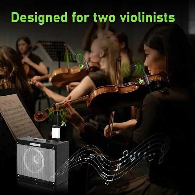 High Quality Sound ReproductionThe Q2/VT-5 violin microphone's transmission distance reaches 132 feet (40 meters). Equipped with a built-in highly sensitive condenser microphone, it perfectly captures the instrument's sound, delivering clearer and more realistic audio. It features infrared automatic pairing, a 48kHz sampling rate, and an ultra-short audio delay.