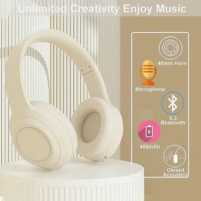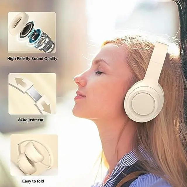 [(White Wireless Headphones)] The foldable over ear headphones has off-white appearance plus lightweight earmuffs design, and it is very popular with fashin people. It will be the best birthday or Christmas gifts for girls kids children teens, adult women and men.