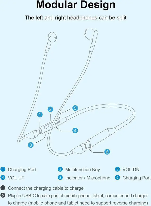 Magnetic Design No KnotThe headphones adopts magnetic design, which will automatically adsorb together when not in use and is not easy to knot