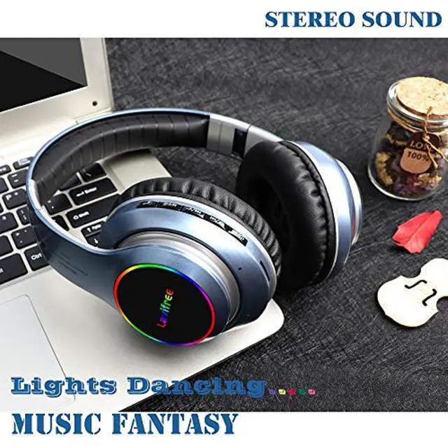 Bluetooth Wireless Headphones, Over Ear LED Light Up Headset with Mic,Hi-Fi Stereo Foldable Wireless/Wired,Micro SD/TF, FM for Adult Teen Kid for Phone/Samsung/Pad/PC/Kindle/Laptop/TV(Blue)