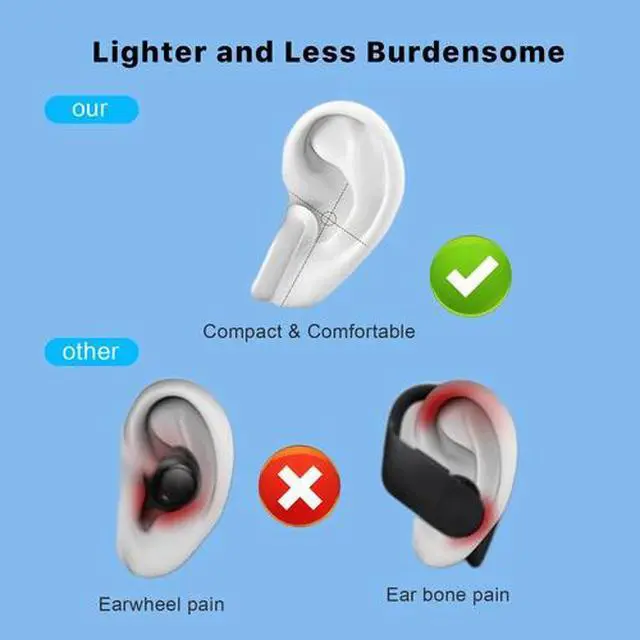 - [Comfortable Fit]Ergonomically designed, with 45-degree sound outlet that conforms to the contours of your ears not easy to fall, the wireless ear buds are comfortable to wear for long periods of time without feeling uncomfortable.