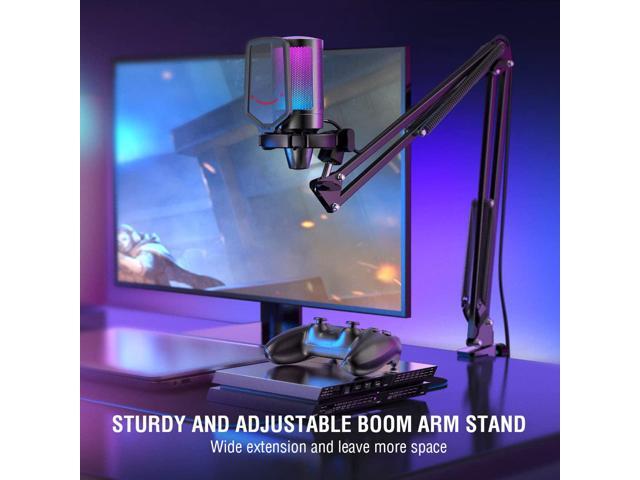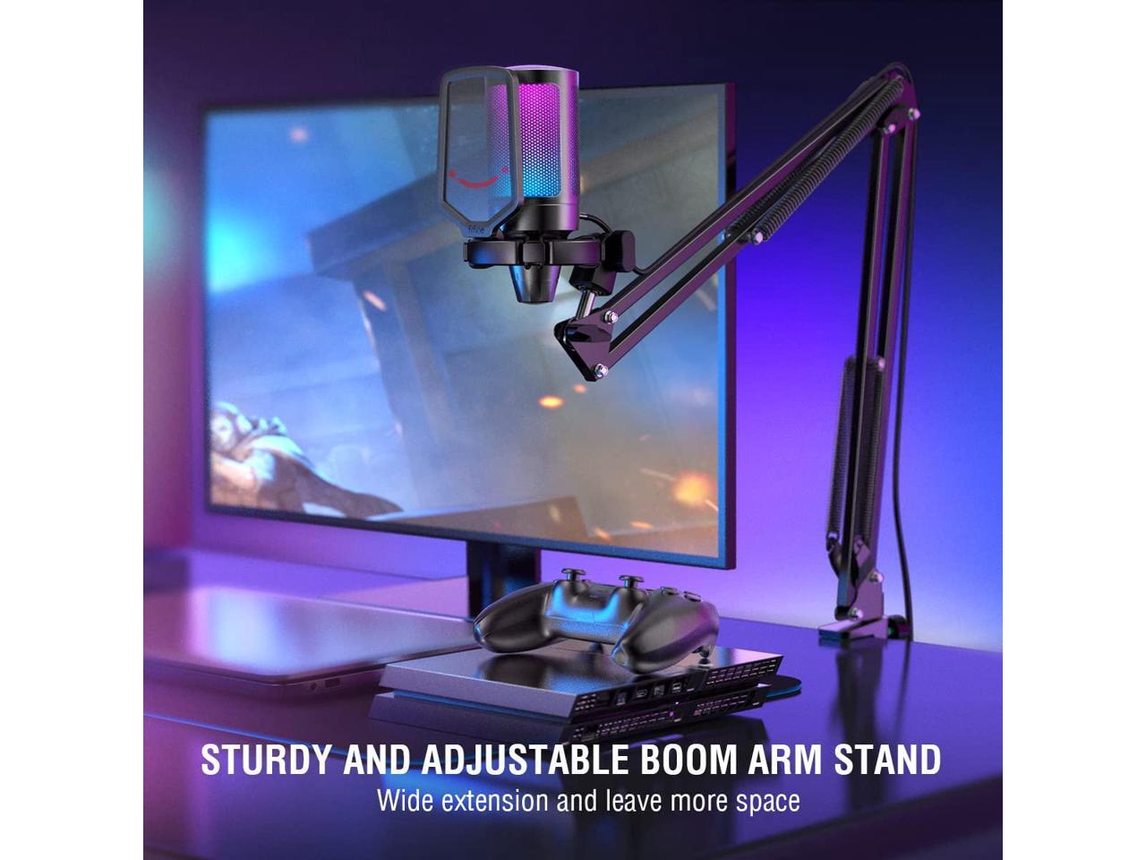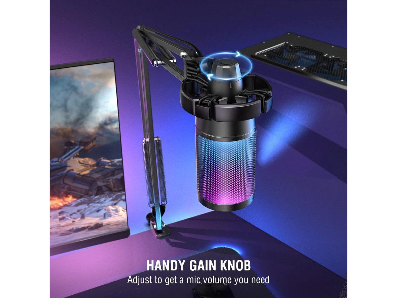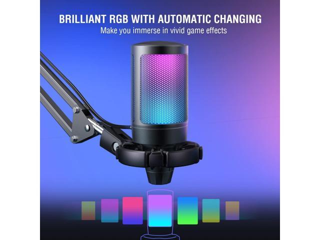 - Cool Lighting Design-Two-tone automatic gradient RGB LED makes your microphone icing on the cake. With soft and coordinated light effects, your game video or live streaming will be more eye-catching.