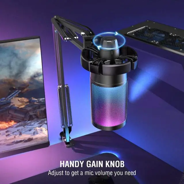 [Cool Lighting Design] Two-tone automatic gradient RGB makes your PC microphone icing on the cake. With soft and coordinated light effects, your game video or live streaming will be more eye-catching via the PC mic with boom arm. Make your channel stands out from ranking list. If you just a game player, the rich RGB on the streamer mic matching with your flowing colors computer accessories can meet the needs of more game atmosphere.