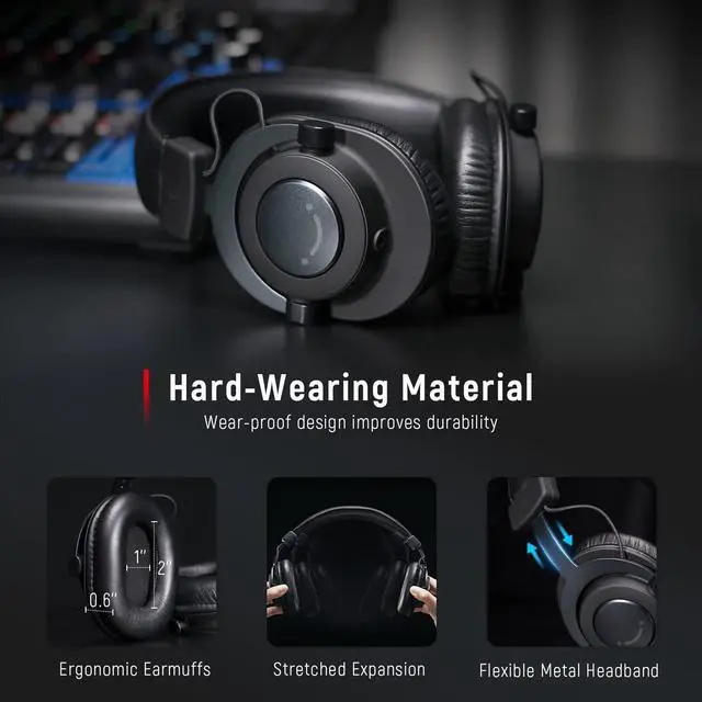 [Delicate Sound] Worked with impedance of 32ohms and 20Hz~20KHz frequency range, the monitor headphones deliver clear and clean sound, which presents accurate mids, and better bass and treble. With dynamic driver, the over-ear headphones provides reliable output sound, and allows you to better understand your own voice when recording monitoring.