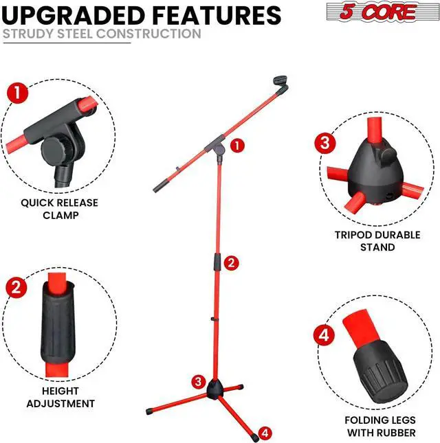 Height Adjustable Mic Stand Easily raise or lower the microphone position from 18 to 72 inches, making it perfect for both stage and studio use.