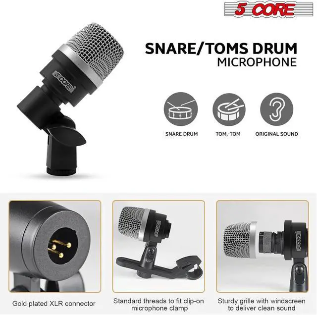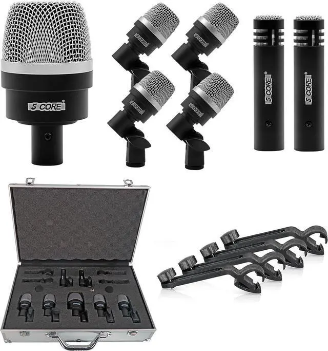 7-Piece Drum SetIncludes 4 snare mics, 2 overhead mics, 1 kick drum mic, 2 clips, 4 clamps, 2 sponges, and a carrying case.