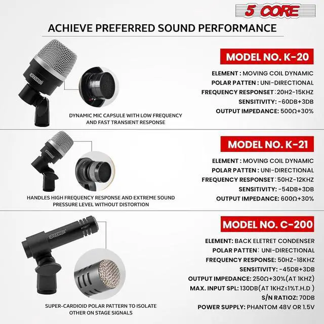 High PerformanceEach mic is engineered to capture everything from low-end punch to sensitive, flat sound.
