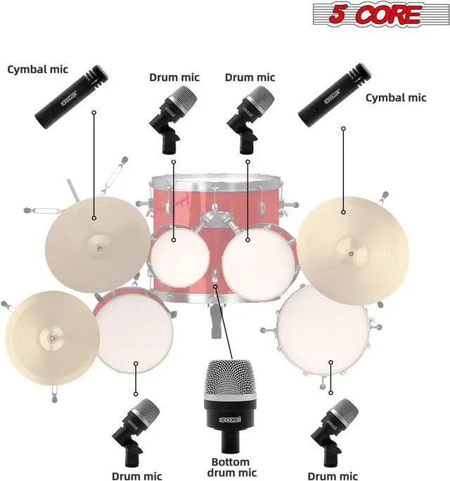 Wide ApplicationProfessional drum microphone kit suitable for percussive, jazz, and other instrument recordings.
