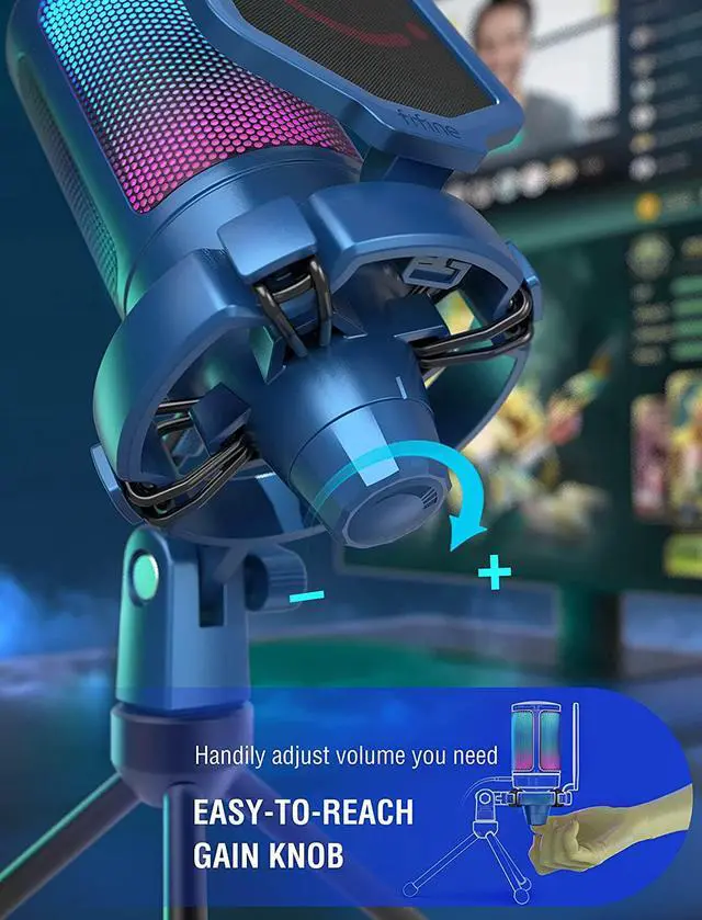 Convenient Adjustment-The gain knob is large and easy to control without clicking sound. You can tape the keyboard with one hand and adjust the volume with the other, no gaming fun sacrificed. You can also adjust an appropriate angle by the thumbscrew to make game chatting or streaming more effective.