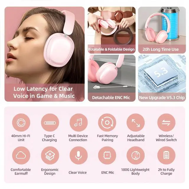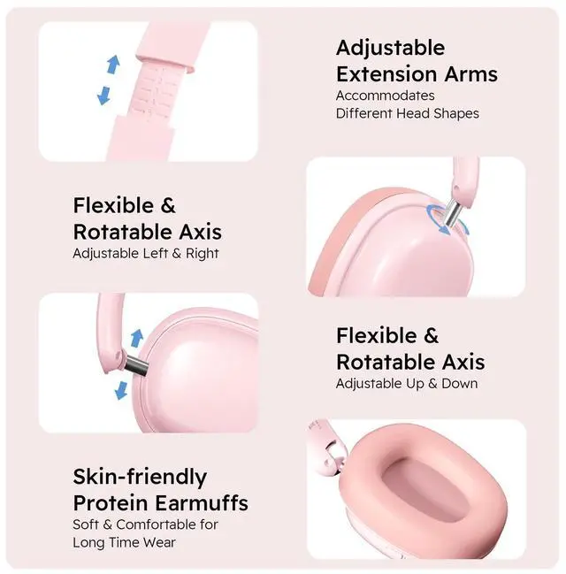 FOLDABLE AND ROTATABLEThis headset combines ergonomic design, you will feel comfortable and stress-free when you put it on. With foldable and rotatable design, it is more convenient to store and carry. It is also free to stretch to adjust the size, which can fit different head shapes.