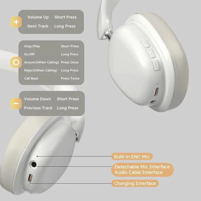 FOLDABLE AND ROTATABLEThis headset combines ergonomic design, you will feel comfortable and stress-free when you put it on. With foldable and rotatable design, it is more convenient to store and carry. It is also free to stretch to adjust the size, which can fit different head shapes.
