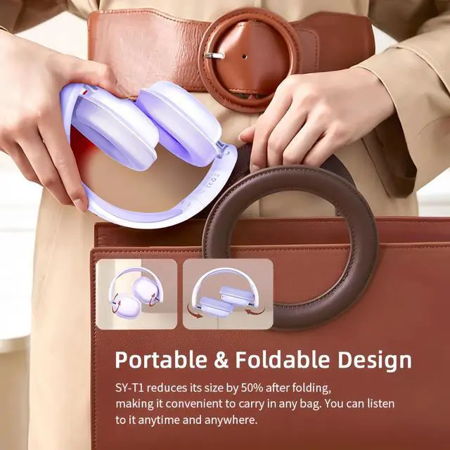 FOLDABLE AND ROTATABLEThis headset combines ergonomic design, you will feel comfortable and stress-free when you put it on. With foldable and rotatable design, it is more convenient to store and carry. It is also free to stretch to adjust the size, which can fit different head shapes.