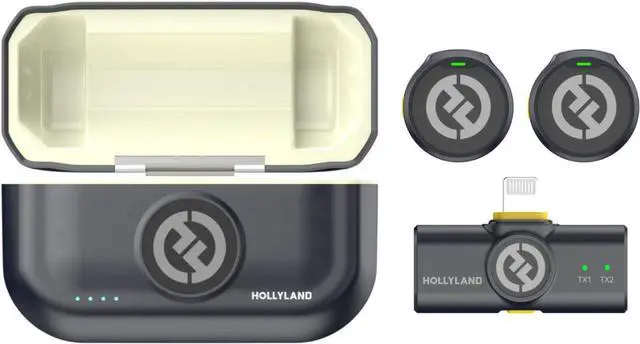 Bundle Includes: 1 x Hollyland Lark M2 Duo Wireless Lightning Lavalier Microphone with 30 Hours Battery Life (Black) and 1 x Maxell Folding Storage Travel Case with Durable Exterior and Zippered Pockets (Black)