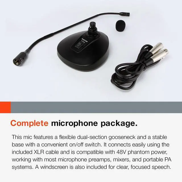 Perfect for podium or podcast, it uses a condenser microphone element known for capturing the subtle nuances of speech