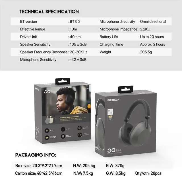 Dual-mode connectivity: Combining a wired 3.5 mm interface with Bluetooth 5.3 connectivity, the GO TUNE is compatible with a wide range of devices and usage scenarios.
