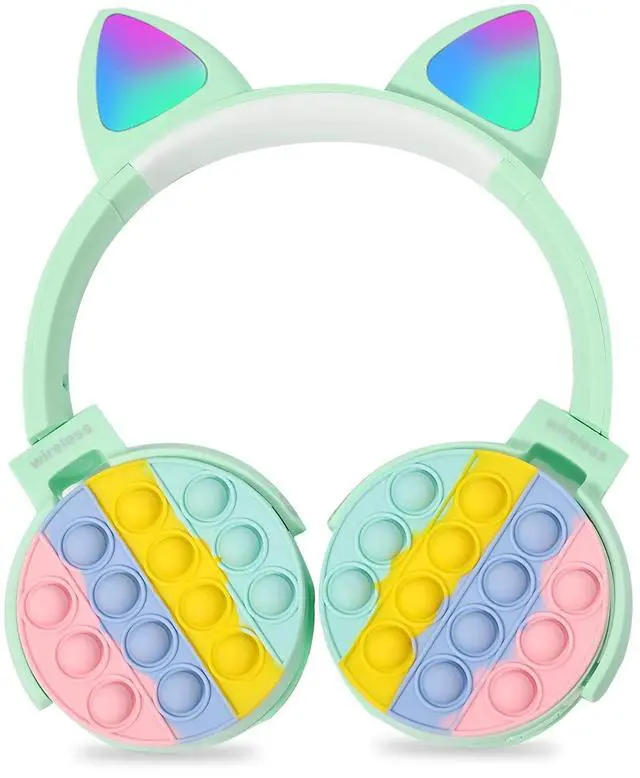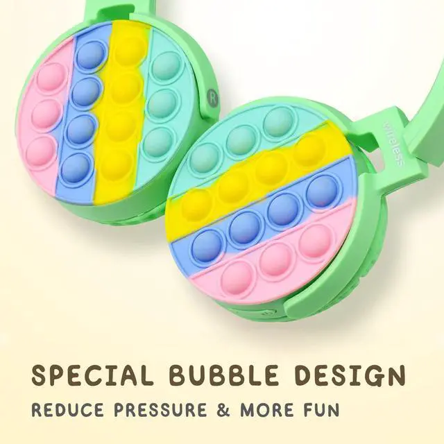 Fidget Headphone - Creatively combined with pop fidget elements on the side of the headphone, it features lots of sensory bubbles that helps to relax yourself by pressing them while you are listing to music or watching videos. A excellent BT headset as well as a perfect stress relief toy for you. Silicone Bluetooth Headset - Our rainbow color on-ear headphone adopts bluetooth 5.0 technology with built-in mic for stable signal, better noise reduction, and wonderful stereo system. The headset is made of high quality silicone and electronic components, lightweight for carrying and comfortable for using.