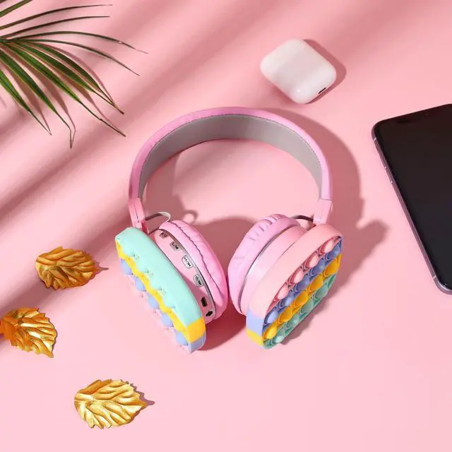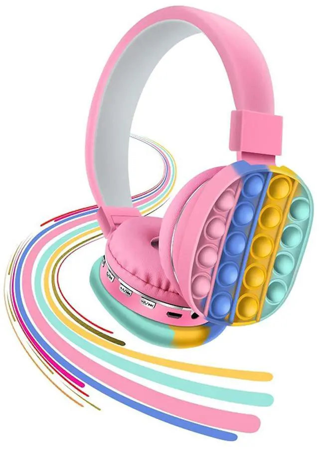 Fidget Headphone - Creatively combined with pop fidget elements on the side of the headphone, it features lots of sensory bubbles that helps to relax yourself by pressing them while you are listing to music or watching videos. A excellent BT headset as well as a perfect stress relief toy for you. Silicone Bluetooth Headset - Our rainbow color on-ear headphone adopts bluetooth 5.0 technology with built-in mic for stable signal, better noise reduction, and wonderful stereo system. The headset is made of high quality silicone and electronic components, lightweight for carrying and comfortable for using.