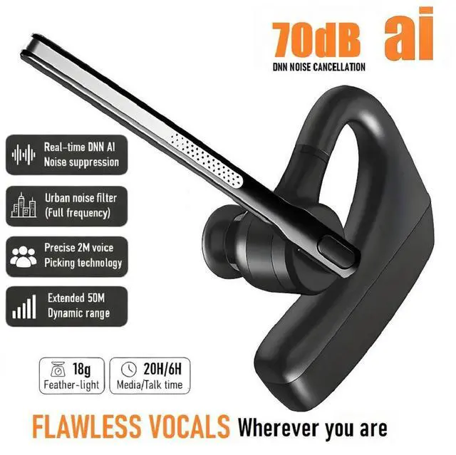 Experience crystal-clear calls at highway speeds with this AI Noise Cancelling Bluetooth Headset. Featuring DNN AI architecture, 125km/h stability, Bluetooth 5.4, and 20H music battery, it's perfect for business, driving, logistics, and call centers.