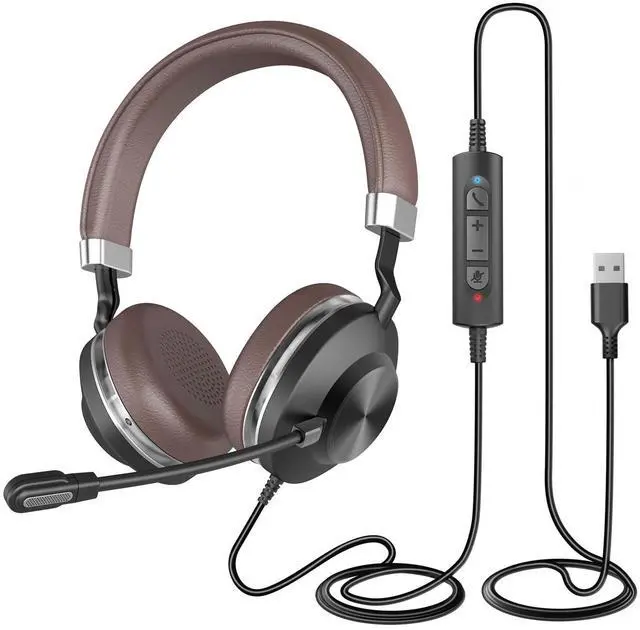 Title: MHP886 Black-Brown Professional Wired USB Headset for Call Center & Office.