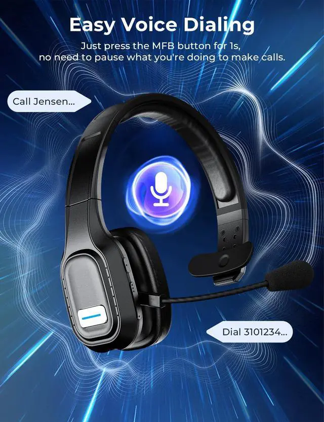 Crystal-clear Calls and Noise Cancellation: Advanced ENC technology cancels up to 90% of background noise, ensuring your voice is heard crisp and cleareven on roaring construction sites or in bustling call centers. This is the ultimate Bluetooth headset with mic for work, perfect as a trucker Bluetooth headset or office headset, delivering face-to-face clarity in every conversation.
