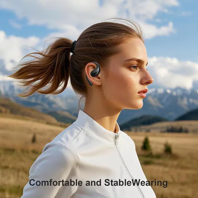 Open Over Ear Design: Open Ear Bluetooth Headphones feature a revolutionary ergonomic design, allowing you to enjoy your favorite music while staying aware of the surrounding environment. With this innovatively designed sports open earbuds, you can hear external sounds clearly without compromising on comfort. The open bluetooth earphones has a unique shape, without being plugged into the ear canal, no longer pain your ear because of long time wearing