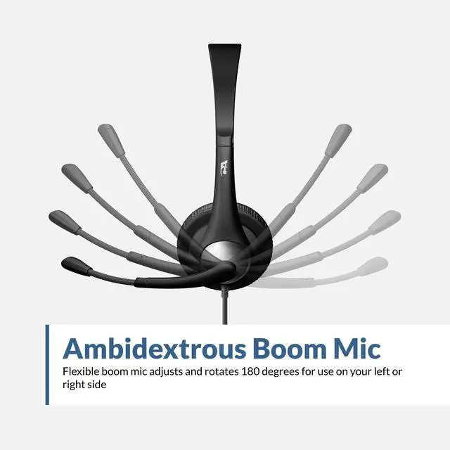 Flexible mic boom adjusts and rotates 180º for easy left or right side use.