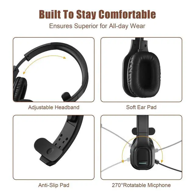 Adjustable headband & Comfortable Wearing & 270° Rotatable Microphone & Anti-slip pad