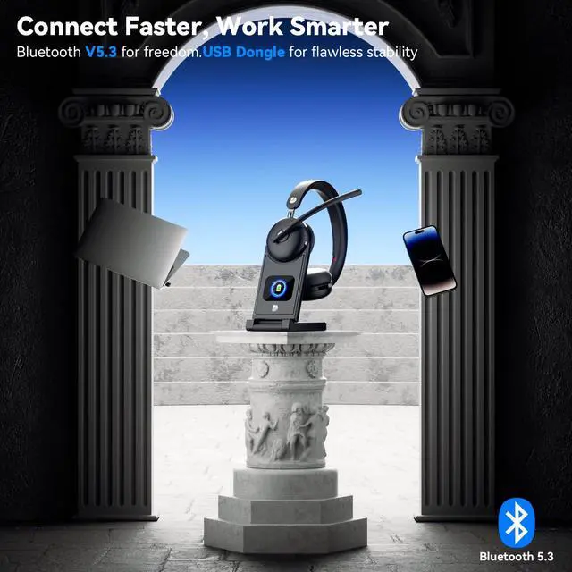 Yes! The Dytole bluetooth headset offers dual connectivity: Bluetooth 5.3 or USB dongle. Simply plug the dongle into any computer—no Bluetooth needed. The dongle auto-pairs