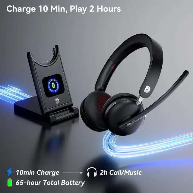 Yes! Our multi-functional charging dock features a built-in LCD screen that displays the real-time battery percentage and charging status of the wireless headset. When the headphones are not in use, it can also store the headset and the USB Dongle