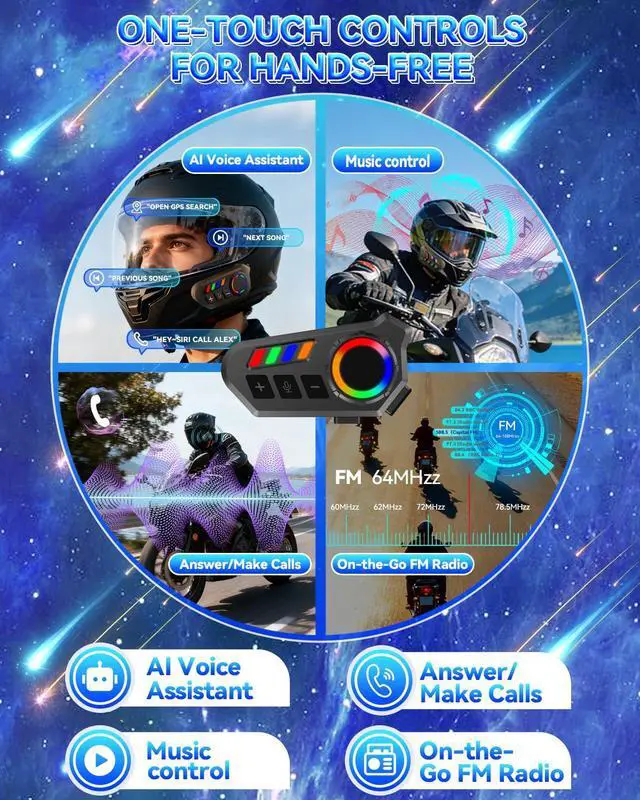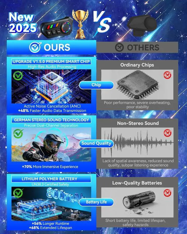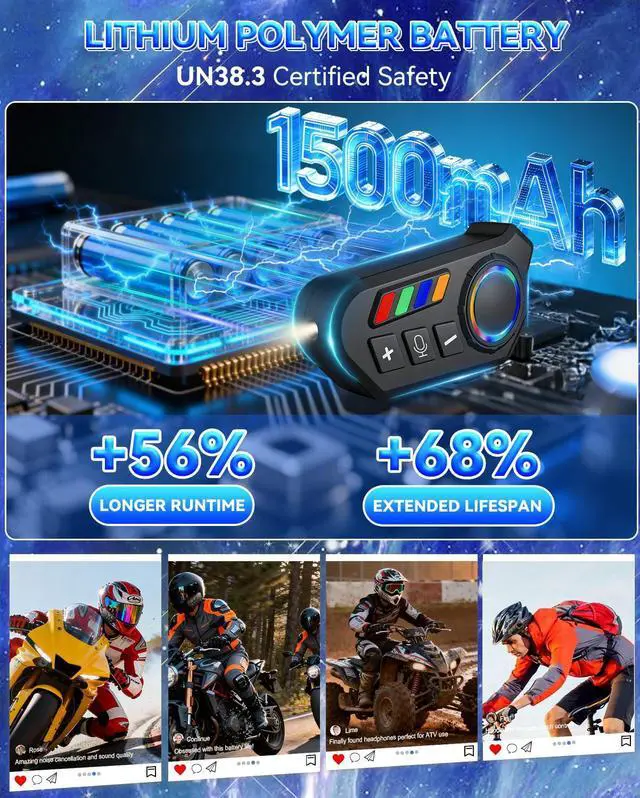 2026 Premium UpgradeA breakthrough in motorcycle helmet audio industry, with over 30 authoritative certifications, trusted by millions of riders globally. Equipped with upgraded smart chip and enhanced performance, it solves common pain points of traditional helmet headsets, providing professional riding audio experience.