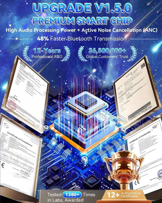 V1.5.0 High-End Smart ChipFeatures high-resolution audio processing, active noise cancellation (ANC), and 48% faster data transmission. Lab tests show it delivers 62% stronger stability than ordinary chips, avoiding frequent disconnection issues. Ensures clear sound quality even at high riding speeds.