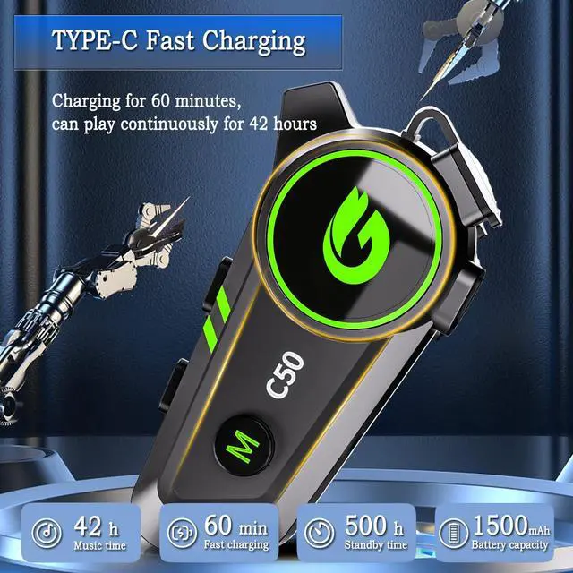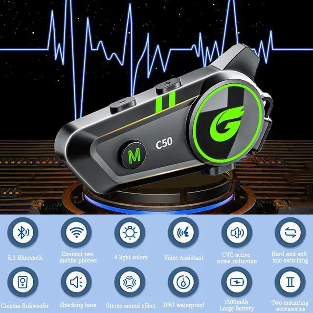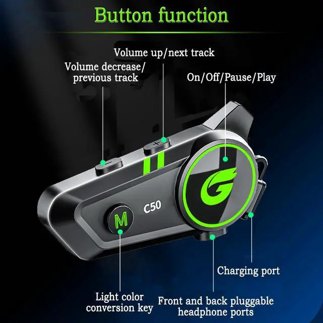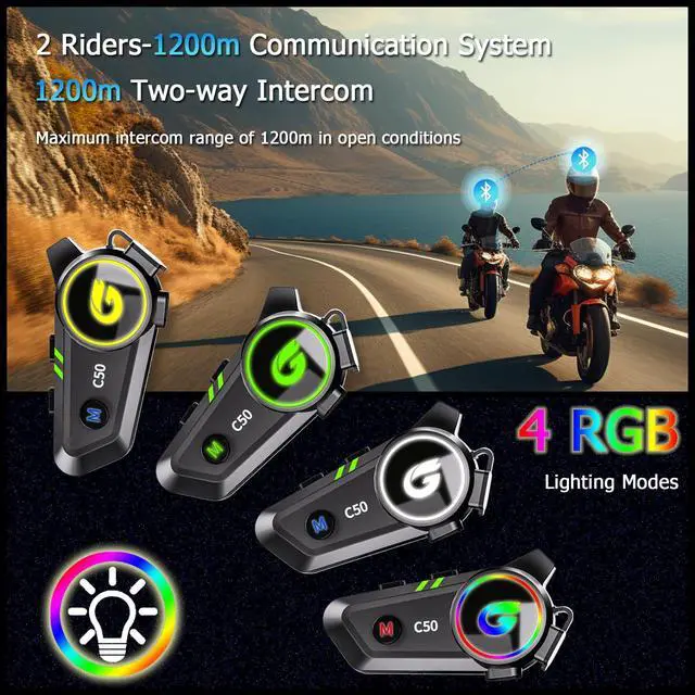Deep Waterproof and Colorful LightsMotorcycle intercom has IP67 deep waterproof technology, which can easily withstand rain and snow. Four cool lights are available for you to switch. It is not only a motorcycle accessory, but also a style for you to show your style, and also a light reminder for night riding