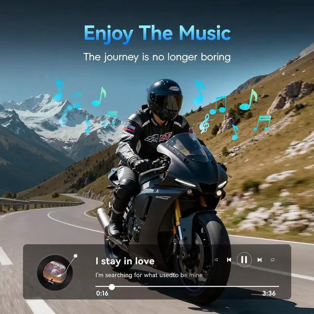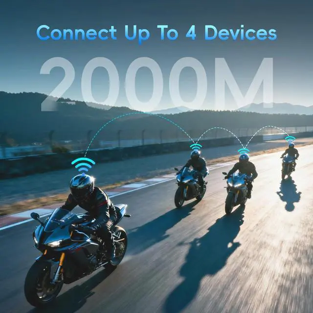 4 People 2KM Live Intercom: Stay connected with up to 4 riders using this advanced bluetooth motorcycle headset, boasting an impressive 2000M (1.24 miles) range. Designed for seamless group rides, this helmet intercom allows it to seamlessly connect and be compatible with other brands of helmet headsets, making it easy to connect and use
