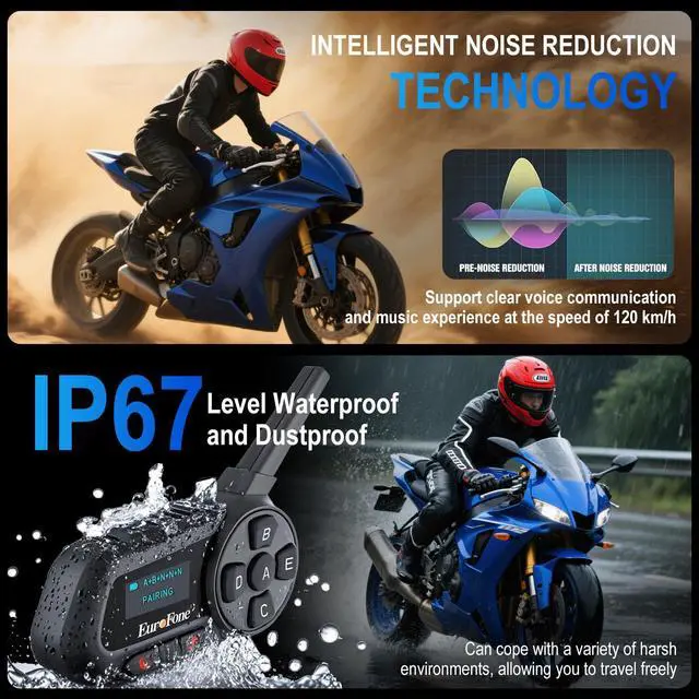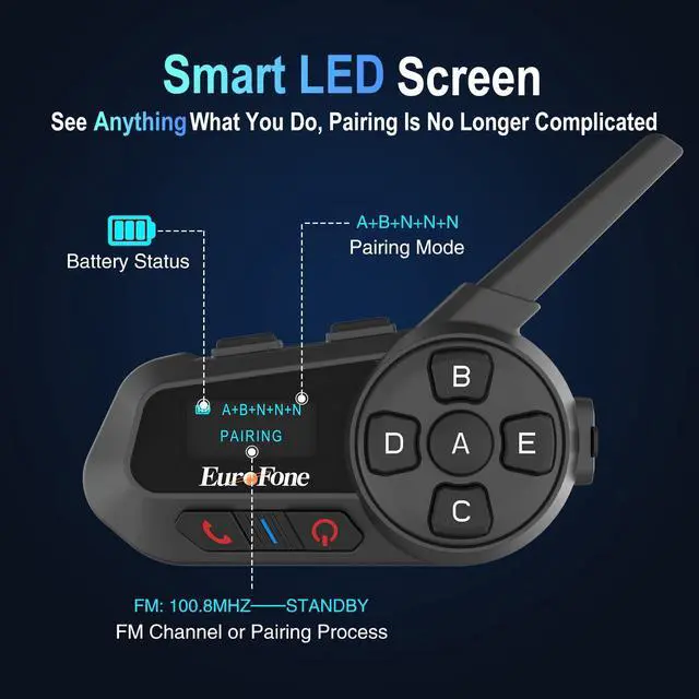 LED ScreenThe motorcycle bluetooth intercom are equipped with a display screen that shows all the information you need, including battery capacity, bluetooth pairing state, FM channel and so on. You no longer have to worry about any complex operations.